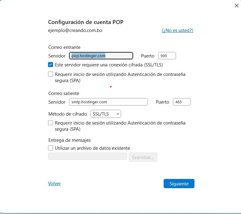 - Servidor entrante SMTP: smtp.hostinger.com