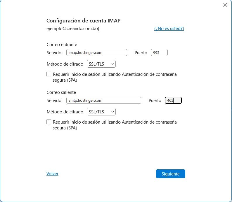 - Servidor de entrada IMAP: imap.hostinger.com